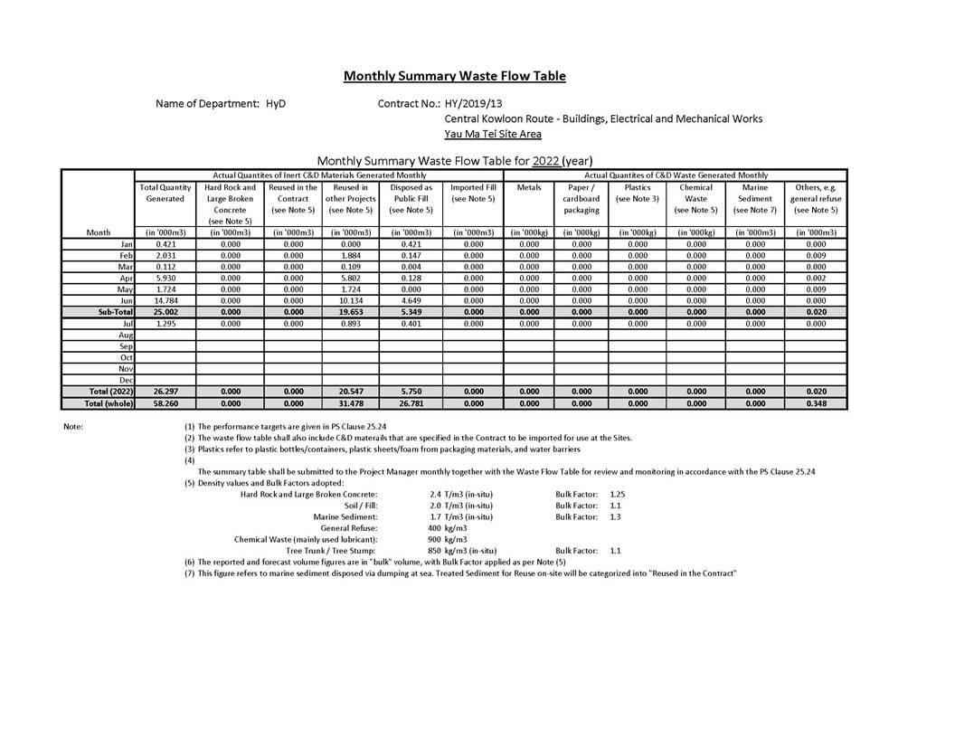 4.1 Waste generated from this Project includes inert construction and demolition (C&D) materials and non-inert C&D materials. Inert C&D waste includes soil, broken rock, broken concrete and building debris, while non-inert C&D materials are made up of C&D waste which cannot be reused or recycled and has to be disposed of at the designated landfill sites.