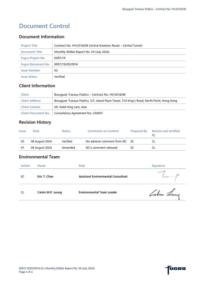Tunnel summarized the monitoring results and audits findings of the EM&A