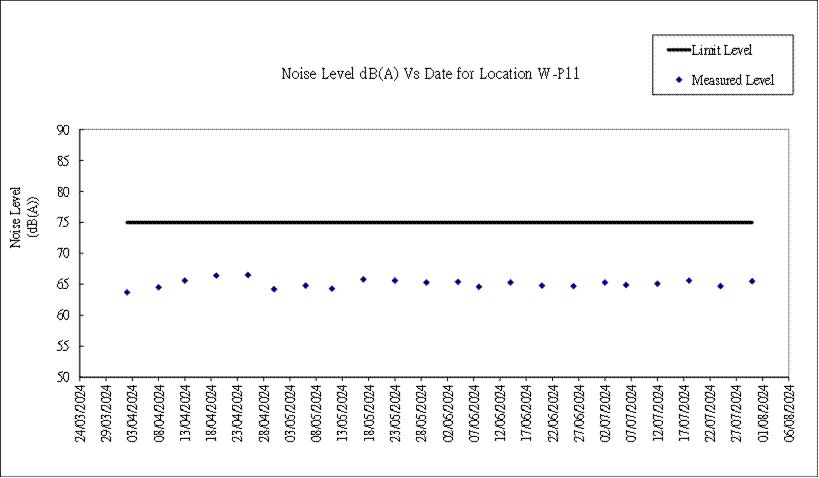 A.7 One Action Level of construction noise was triggered during the reporting month as documented complaints were received. No exceedance of Limit Level of construction noise was recorded in the reporting month. No exceedance of the Action and Limit Level of 24-hour TSP and 1-hour TSP was recorded in the reporting month.
