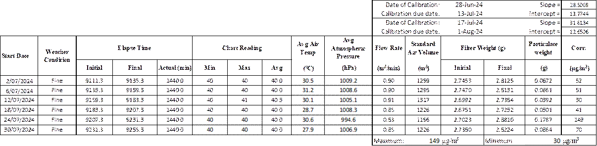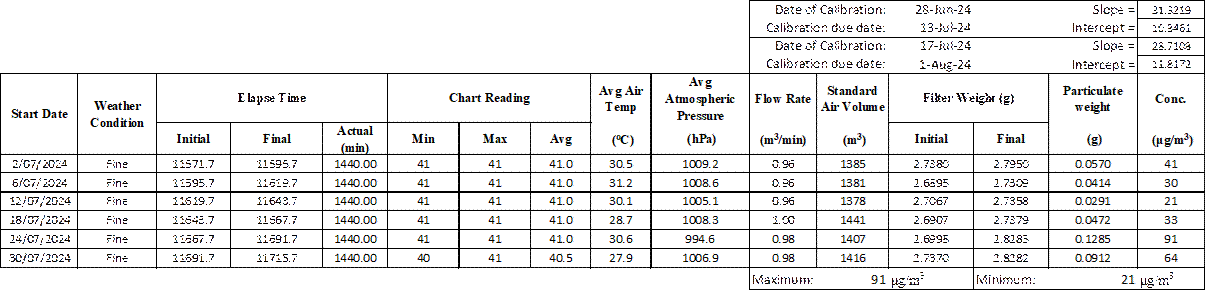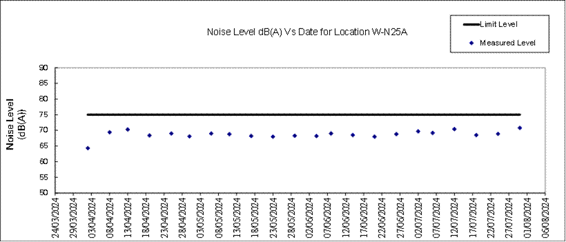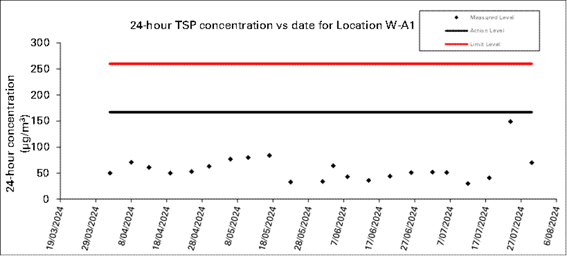 A.7 One Action Level of construction noise was triggered during the reporting month as documented complaints were received. No exceedance of Limit Level of construction noise was recorded in the reporting month. No exceedance of the Action and Limit Level of 24-hour TSP and 1-hour TSP was recorded in the reporting month.