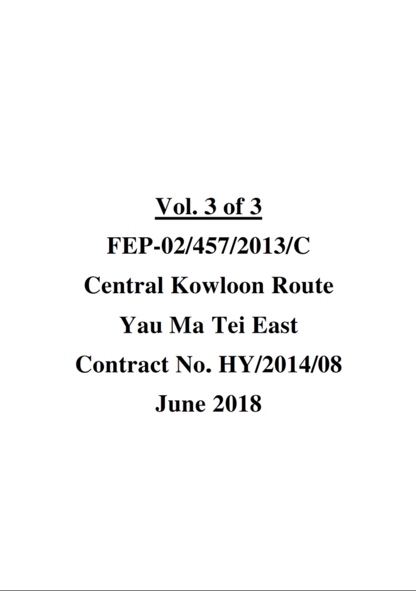 1.2. The Central Kowloon Route – Design and Construction Environmental Impact Assessment Report (Register No.: AEIAR-171/2013) was approved with conditions by the Environmental Protection Department (EPD) on 11 July 2013. An Environmental Permit (EP 457/2013) was issued on 9 August 2013. Variations of EP (VEP) was subsequently applied for and the latest EP (EP-457/2013/C) was issued by EPD on 16 January 2017. A Further EP (FEP-02/457/2013/C) was issued by EPD on 5 March 2018.