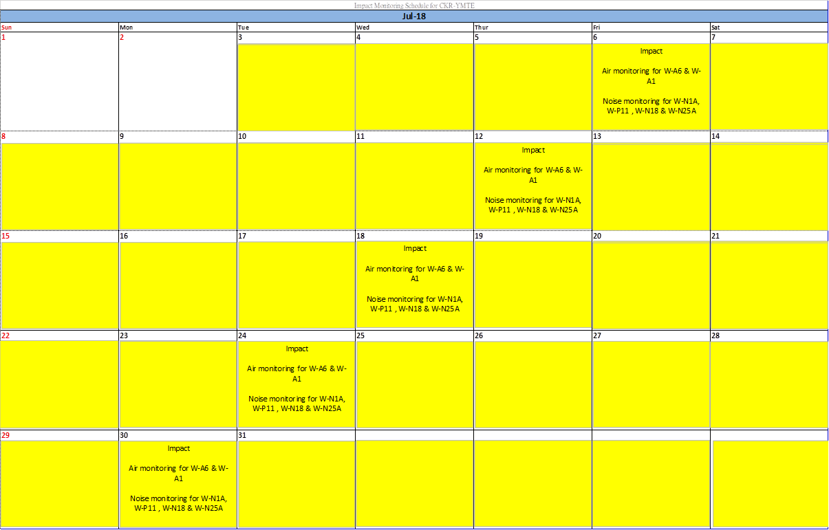 A.7 Joint weekly site inspections were conducted by representatives of the Contractor, Engineer and Contractor’s ET on 14 June 2018. Details of the audit findings and implementation status are presented in Section 5.