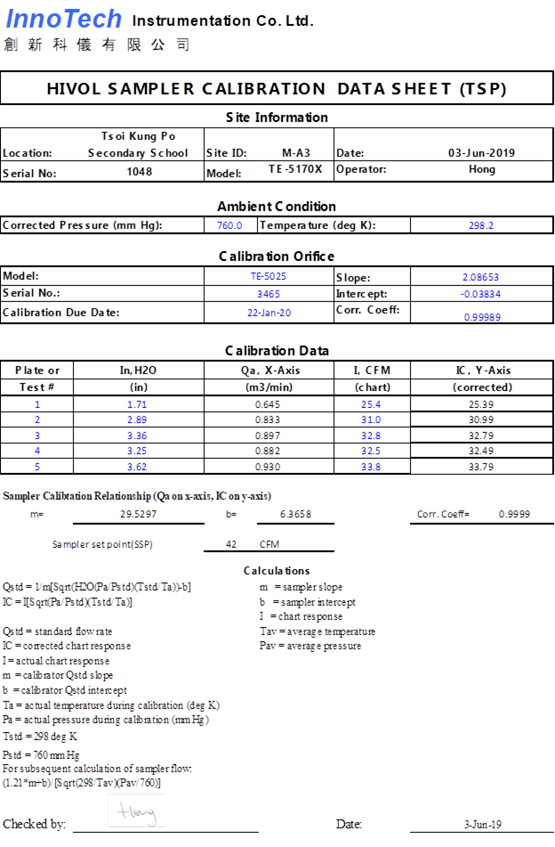 H. Calibration Certificate (Air Monitoring)