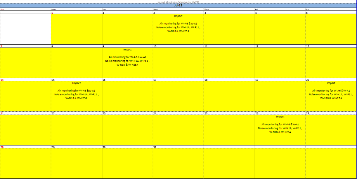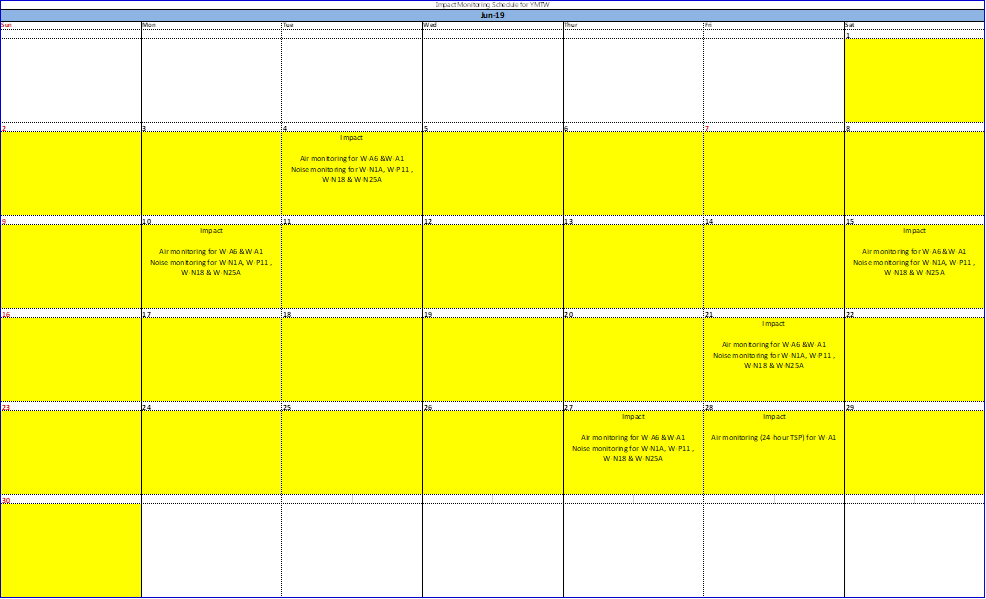 A.7 Joint weekly site inspections were conducted by representatives of the Contractor, Engineer and Contractor’s ET on 6, 13, 20, 27 June 2019. Details of the audit findings and implementation status are presented in Section 5.