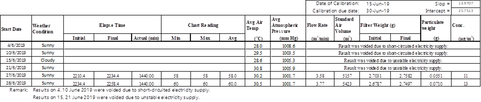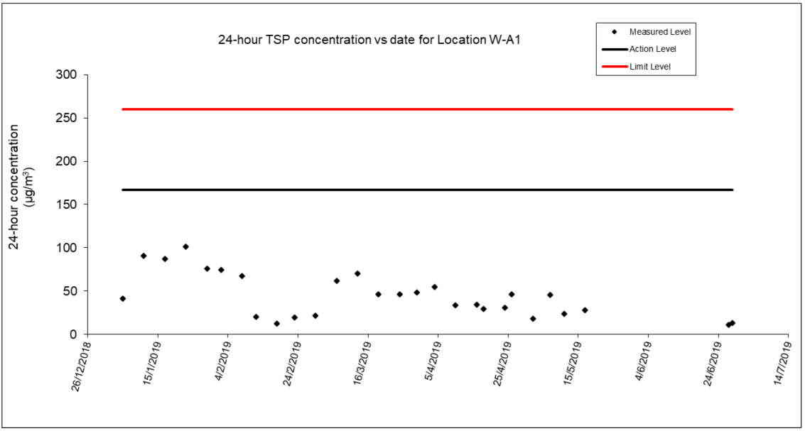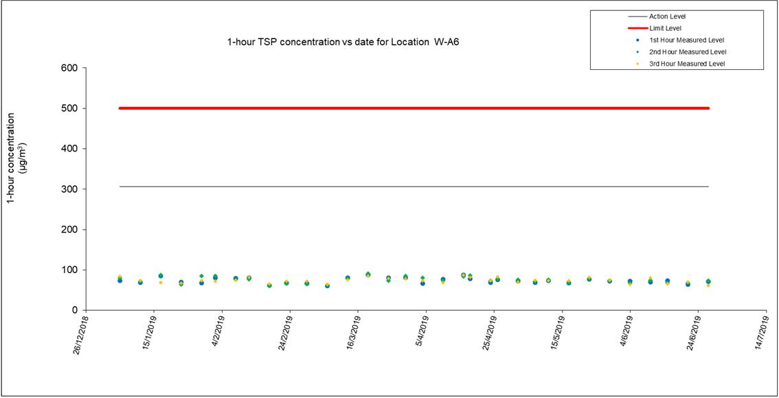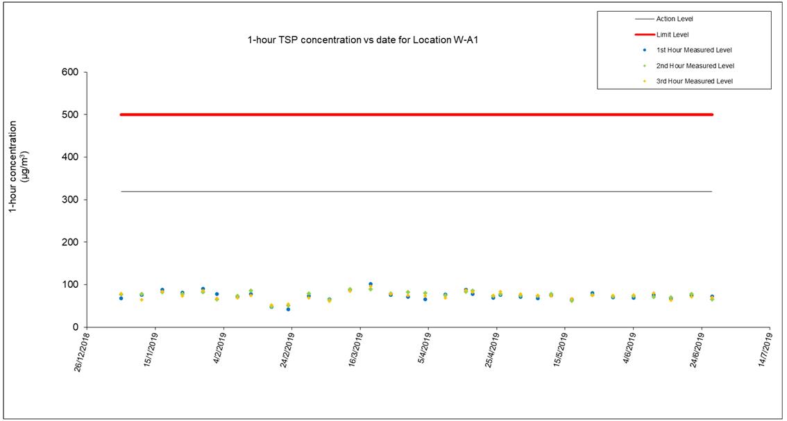 A.10 No exceedance of the Action and Limit Levels of 24-hour TSP and 1-hour TSP monitoring were recorded during the reporting period.