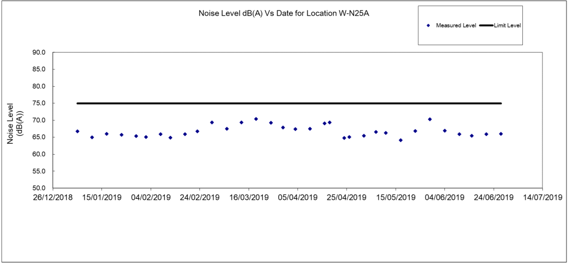 Figure 3: Graphical Illustration of Measured Noise Levels at W-N25A
