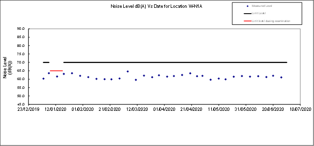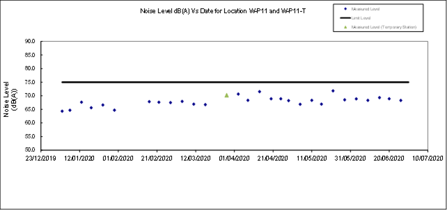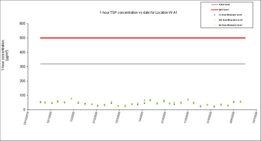 A.7 Two Action Levels of construction noise were triggered during the reporting period as there were two documented complaints received on 1 June 2020 and 8 June 2020 related to construction noise at former Yau Ma Tei Police Station and Zone E respectively. No exceedance of Limit Level of construction noise. No exceedance of the Action Level and Limit Level of 24-hour TSP and 1-hour were recorded during the reporting month.