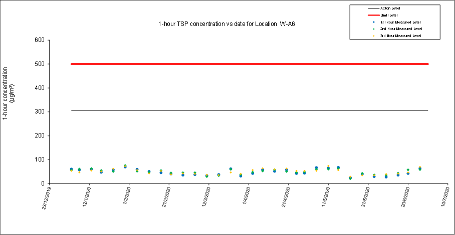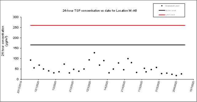 A.7 No exceedance of the Action and Limit Levels of 24-hour TSP and 1-hour TSP and construction noise monitoring were recorded during the reporting period.