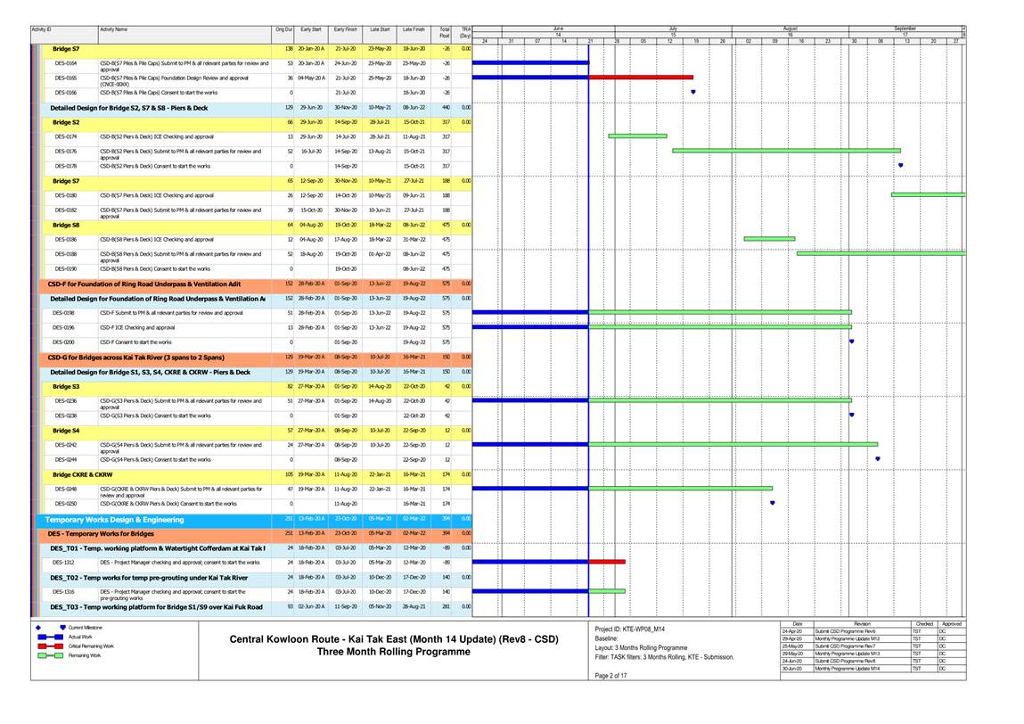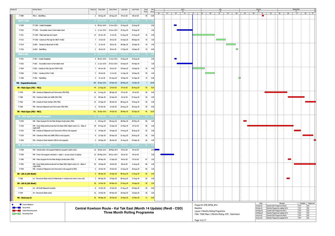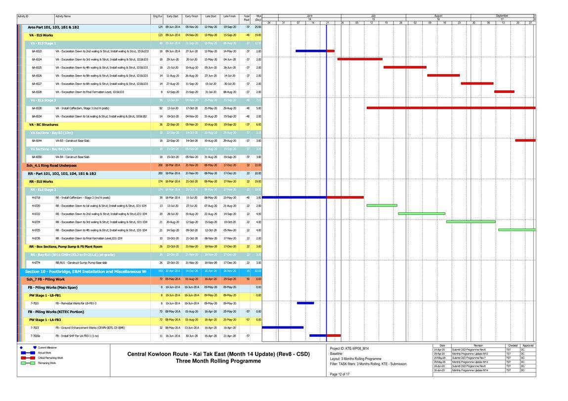1.4. A summary of major construction activities provided by the Contractor in this reporting period is shown in Table 1.1. The construction programme is presented in Appendix B.