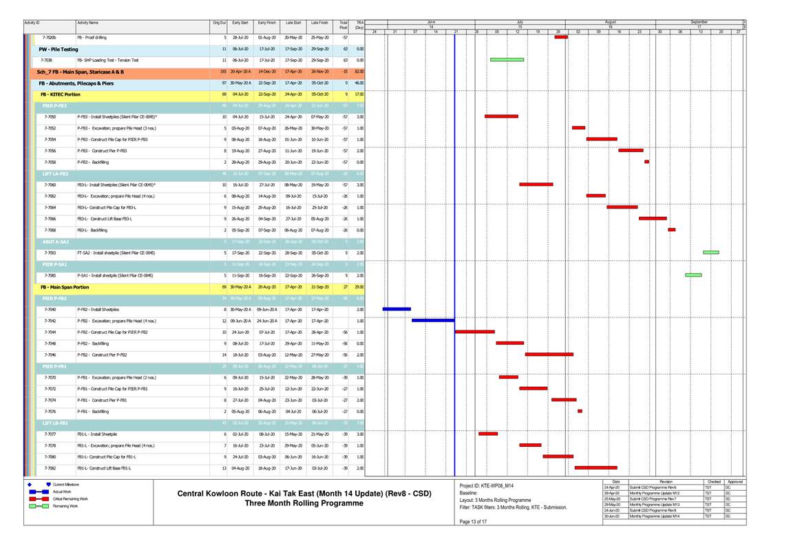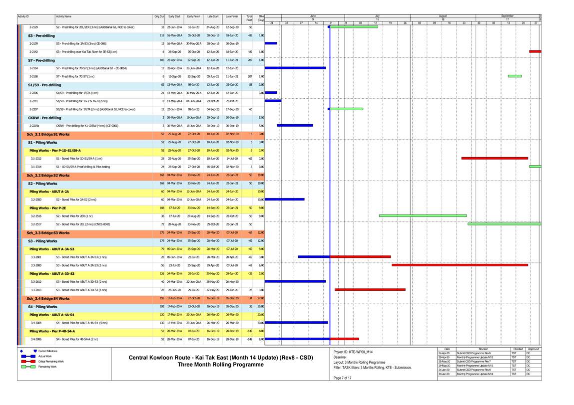 · Ground Investigation at Portion 2B & 3B & Kai Cheung U Turn & Kai Cheung Loop Road. · Bored Pile at Portion 1A, 2B & 3B. · Foundation Work for the Foot Bridge at Kai Fuk Road. · Sheetpiling Works for Adit at Area 1D3. · Sheetpiling Works for Underpass at Portion 3B. · Construction of Marine Platform at Kai Tak Nallah |