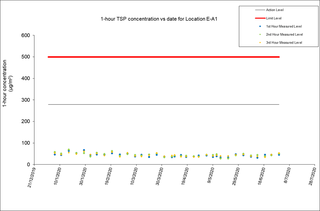 Figure 1: Graphical Illustration of Measured 1-hour TSP (μg/m3) Levels at E-A1