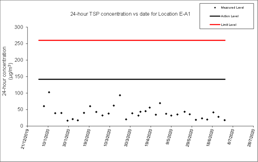 Figure 2: Graphical Illustration of Measured 24-hour TSP (μg/m3) Levels at E-A1