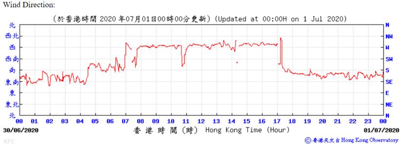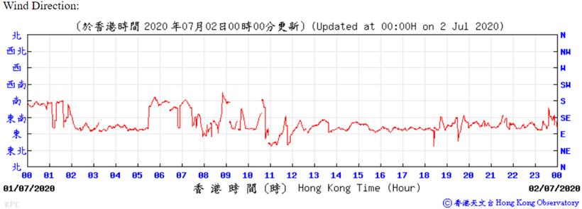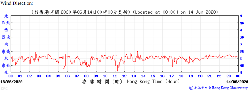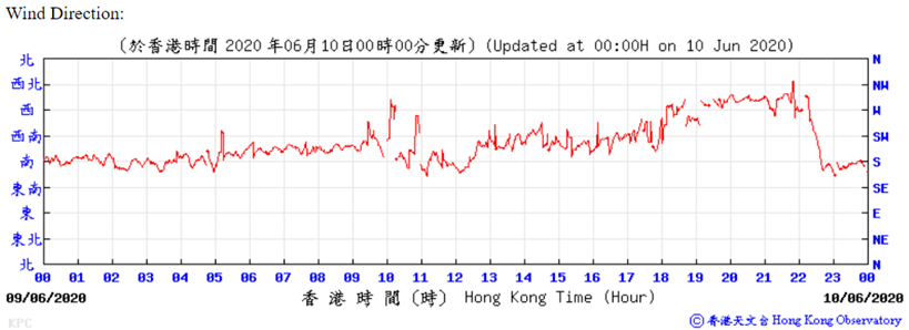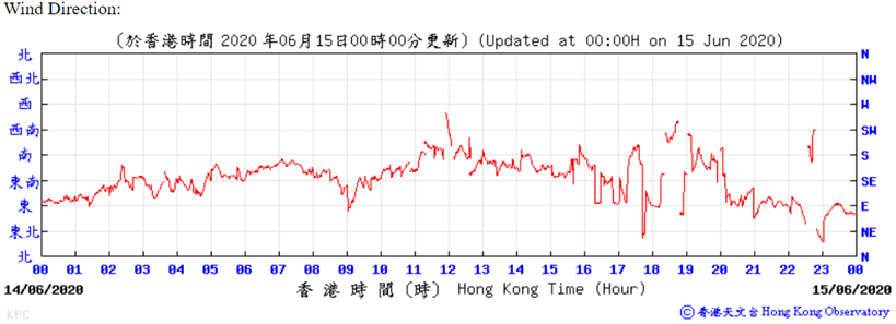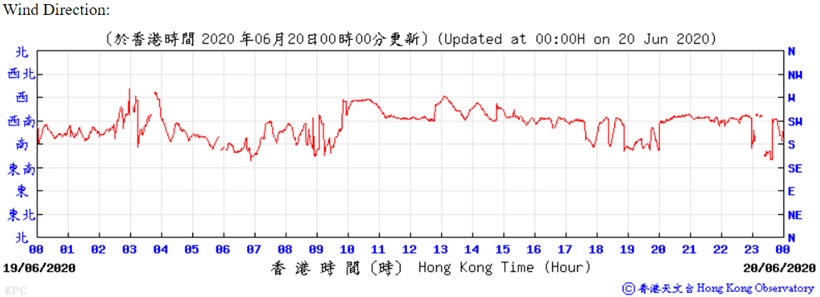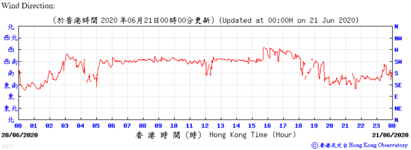 WIND DIRECTION DATA FOR 2, 8, 13, 19, 24 and 30 Jun 2020