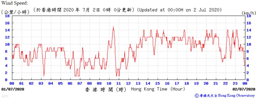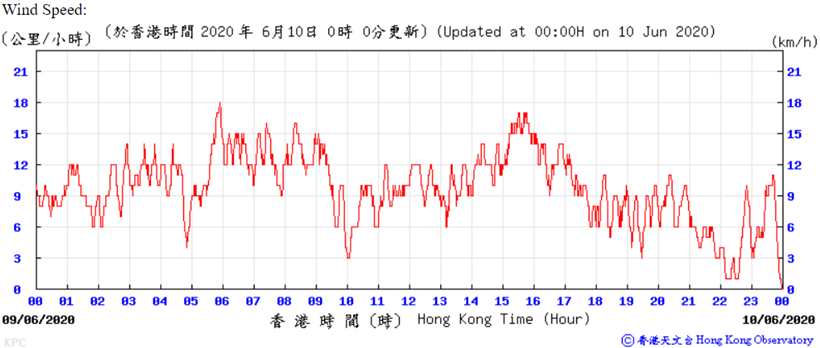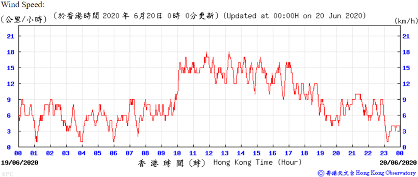 WIND SPEED DATA FOR 2, 8, 13, 19, 24 and 30 Jun 2020