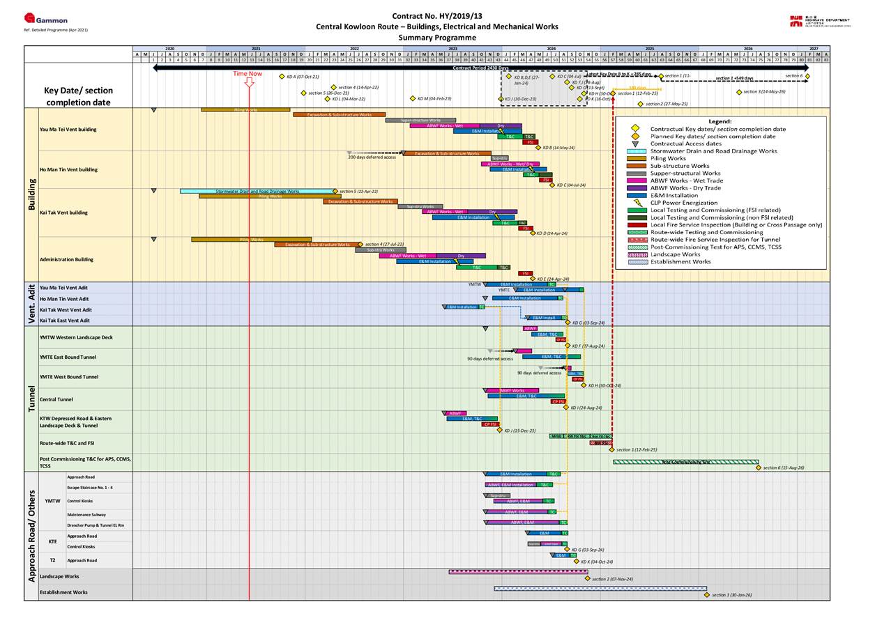 · Pre-drilling Works at Portion 1B, 1D, 1E and 1F · Socket H-pile at Portion 1B, 1D, 1E, 1F and 1G · Removal of existing Steel Bridge at Portion 1B, 1E and 1G · RC works for Vent Adit at Ch 0-60 & Temporary Bulkhead Wall at Portion 9, 1E · ELS and Excavation Works for Vent Adit Ch 90~130 (Zone 3) at Portion 1E · Construction of Noise Barrier C02 & S01 (along Lin Cheung Road) at Portion 1E · Bridge Deck Construction at Bridge B2/C2 (C2P1, C2P2 and B2P1) at Portion 1E · Pile Cap and Pier for B2P3 (Bridge B2) at Portion 1G · Bridge Deck Construction at Bridge G at Portion 1B · GRP Pipe Installation for New Sewerage at Portion 17, 1B and 1G · ELS & Excavation Works for Vent. Adit Ch 240~250 (Zone A2) at Portion 1D · Construction of Vent Adit Ch 250~280 at Portion 1D · Construction of Box Culvert B (Zone 4A) at Portion 1D · ELS and Excavation Works (Segment 4, 7, 10 to 12) for Vent. Adit and Depressed Road Construction at Portion 1F and 10 · Capping Beam Construction at Portion 10 |