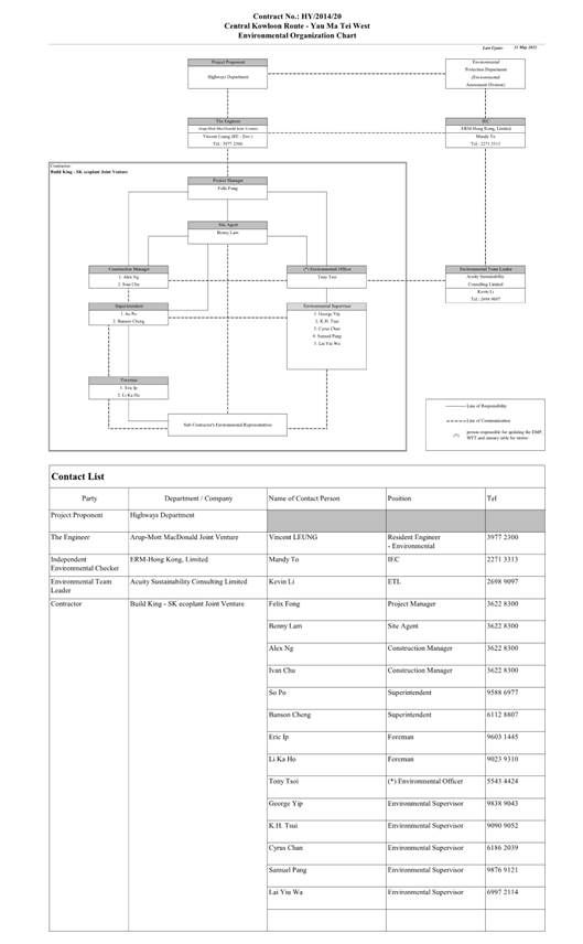6.5 The Event and Action Plans for air quality and construction noise could be referred to Appendices D and E of the EM&A report in Contract No. HY/2014/20 respectively.