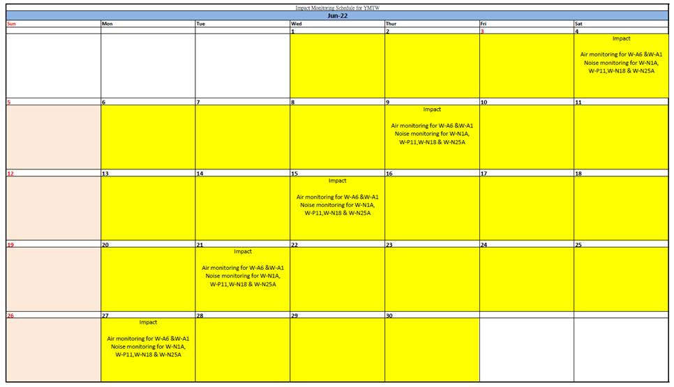 2.3 Site audits were carried out on a weekly basis to monitor and audit the timely implementation of air quality mitigation measures within the site boundaries of this Project. The summary of site audits are shown in Table 6.1 of this report.