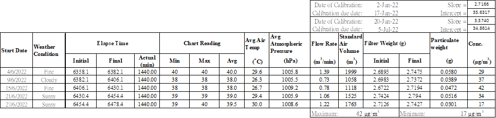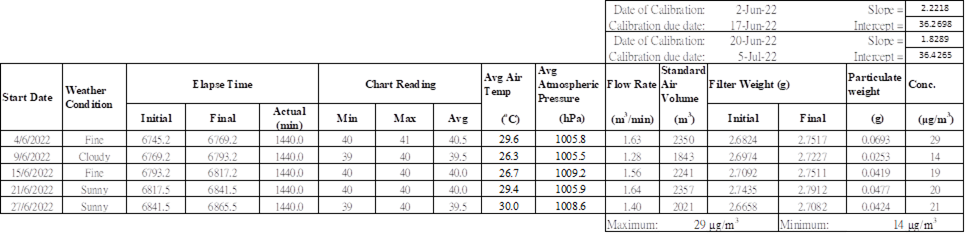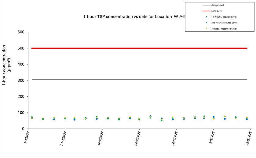2.2 No Action/Limit Level exceedance was recorded for all 1-hour TSP and 24-hour TSP monitoring in the reporting month.