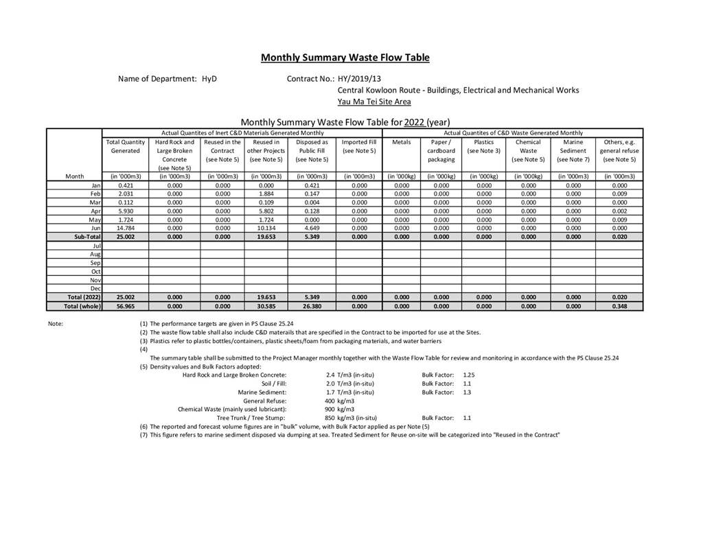 4.1 Waste generated from this Project includes inert construction and demolition (C&D) materials and non-inert C&D materials. Inert C&D waste includes soil, broken rock, broken concrete and building debris, while non-inert C&D materials are made up of C&D waste which cannot be reused or recycled and has to be disposed of at the designated landfill sites.