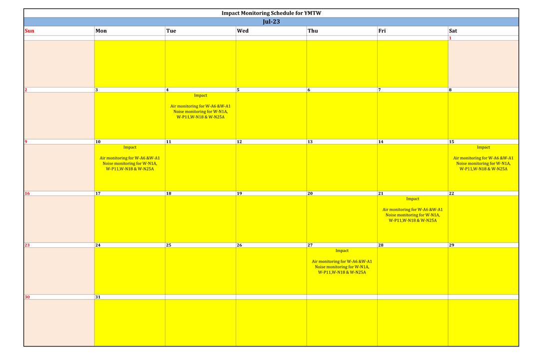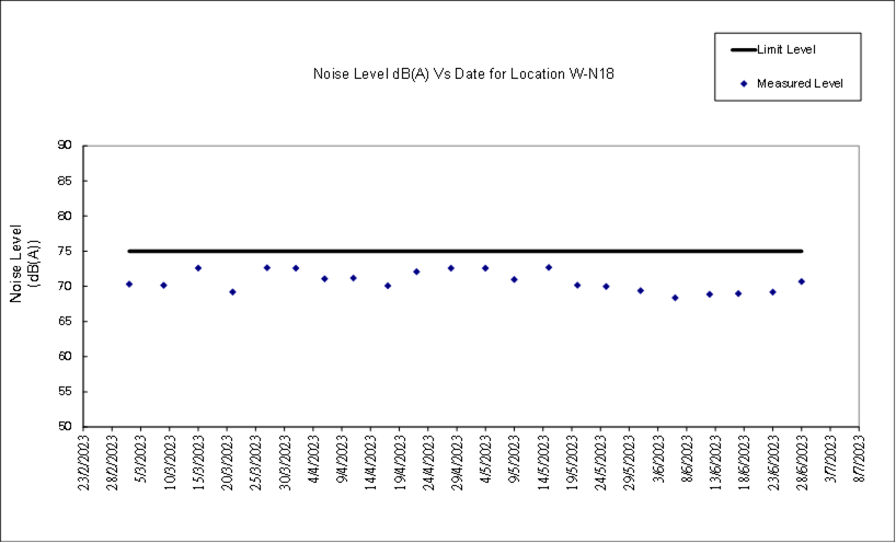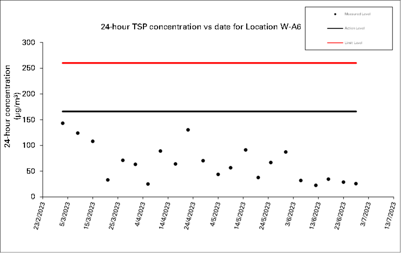 A.7 No exceedance of the Action and Limit levels of 1 hour TSP, 24 hours TSP and construction noise monitoring was recorded during the reporting month.