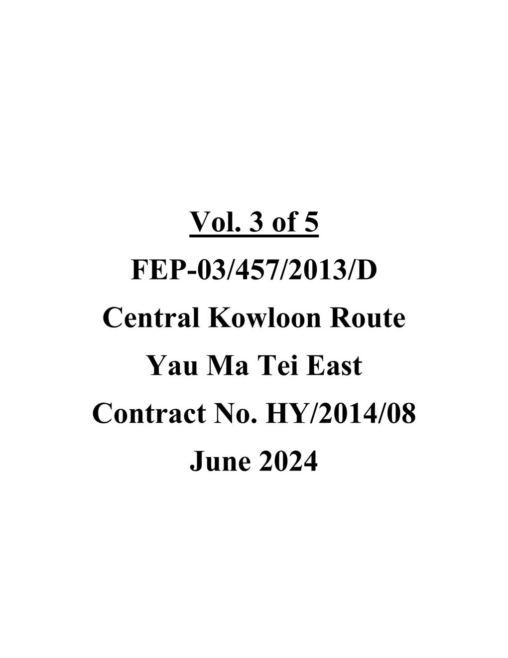 1.2. The Central Kowloon Route – Design and Construction Environmental Impact Assessment Report (Register No.: AEIAR-171/2013) was approved with conditions by the Environmental Protection Department (EPD) on 11 July 2013. An Environmental Permit (EP 457/2013) was issued on 9 August 2013. Variations of EP (VEP) was applied for and the EP (EP-457/2013/C) was issued by EPD on 16 January 2017. Variations of EP (VEP) was subsequently applied for and the latest EP (EP-457/2013/D) was issued by EPD on 15 June 2021. A Further EP (FEP-03/457/2013/D) was issued by EPD on 5 November 2021.