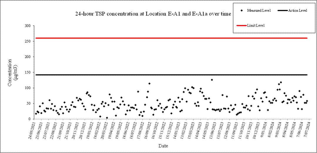 Limit Levels of 24-hour TSP and 1-hour TSP monitoring were recorded during the