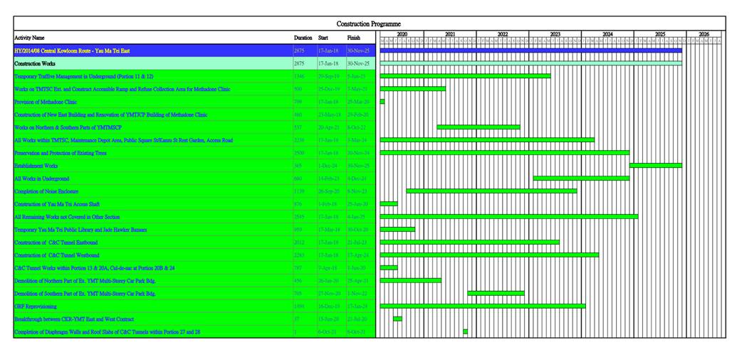 1.3. The construction of the CKR had been divided into different sections. This Contract No. HY/2014/08 – Section of Yau Ma Tei East (YMTE) covers part of the construction activities located at Yau Ma Tei under the EP and FEP which includes: