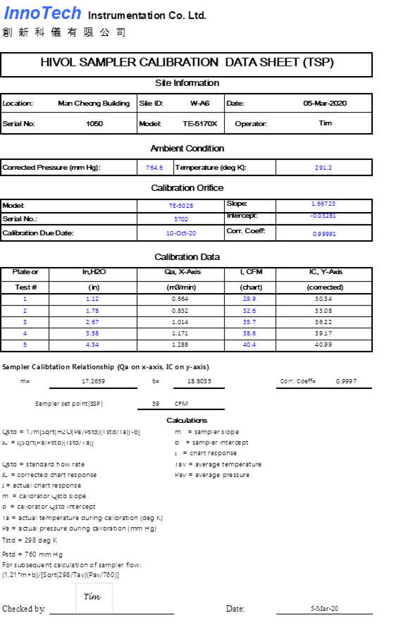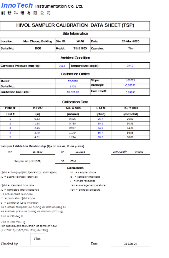 H. Calibration Certificate (Air Monitoring)