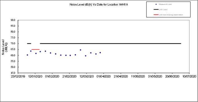 Remark: Noise monitoring station at Prosperous Garden Block 1 (W-N25A) was temporarily suspended from 24 March 2020 to 6 April 2020 due to a case of novel coronavirus infection at the Prosperous Garden Block 4. A temporary alternative noise monitoring location, W-N25A-T will be used on 3 April 2020.