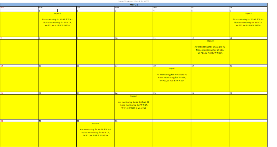 A.4 Bi-weekly inspection of the implementation of landscape and visual mitigation measures was conducted on 11, 25 March 2021. Details of the audit findings and implementation status are presented in Section 5.