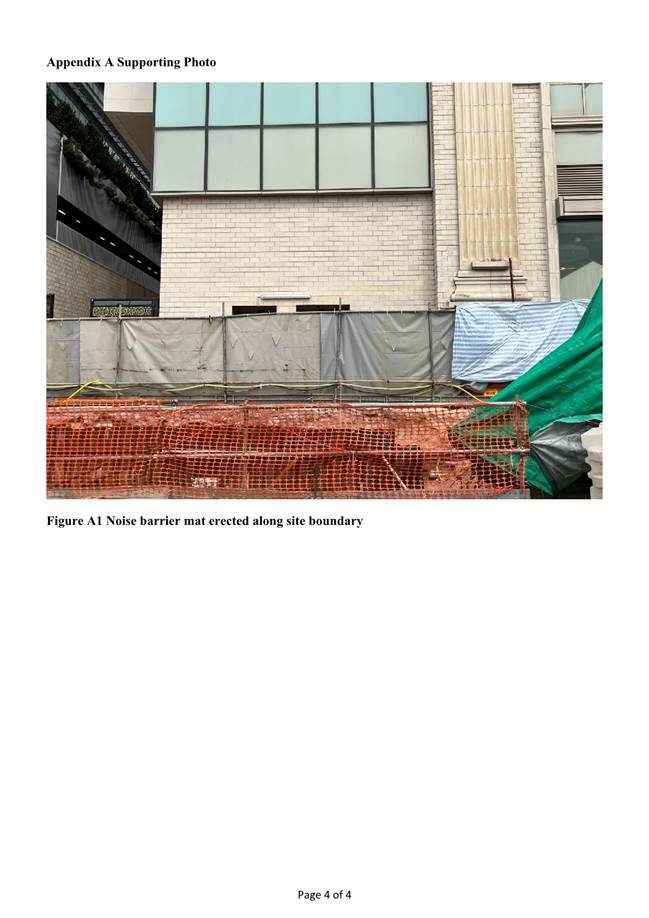 3.3 Site audits were carried out on a weekly basis to monitor and audit the timely implementation of construction noise mitigation measures within the site boundaries of this Project. The summary of site audits are shown in Table 6.1 of this report.