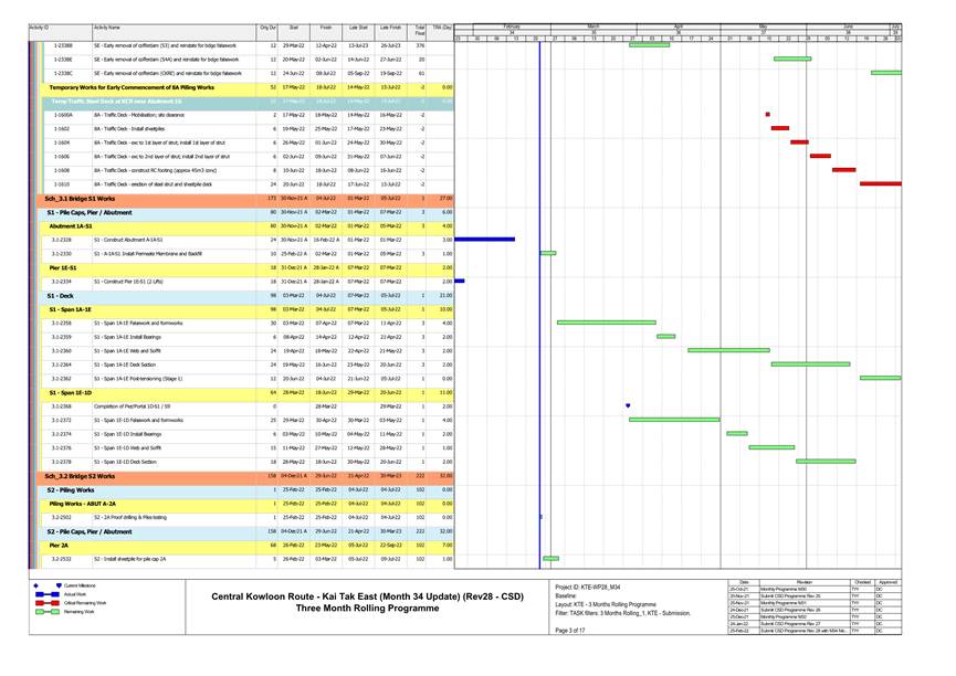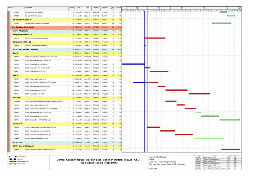 1.4. A summary of major construction activities provided by the Contractor in this reporting period is shown in Table 1.1. The construction programme is presented in Appendix B.