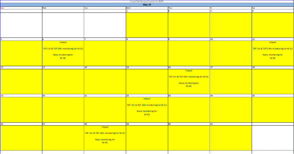 A.7 Joint weekly site inspections were conducted by representatives of the Contractor, Engineer and Contractor’s ET on 7, 14, 21, 28 May 2019. The representative of IEC joined the site inspection on 14 May 2019. Details of the audit findings and implementation status are presented in Section 5.