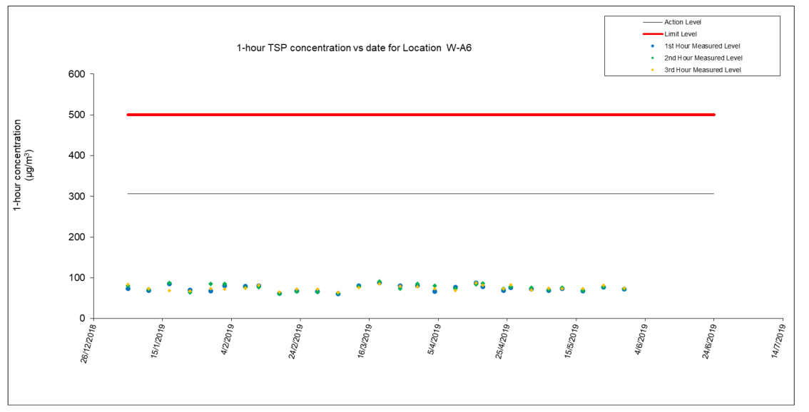A.10 No exceedance of the Action and Limit Levels of 24-hour TSP and 1-hour TSP monitoring were recorded during the reporting period.