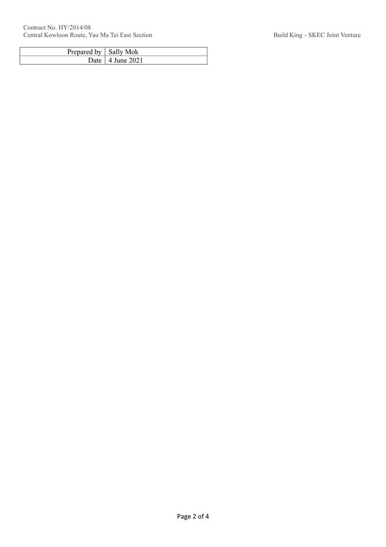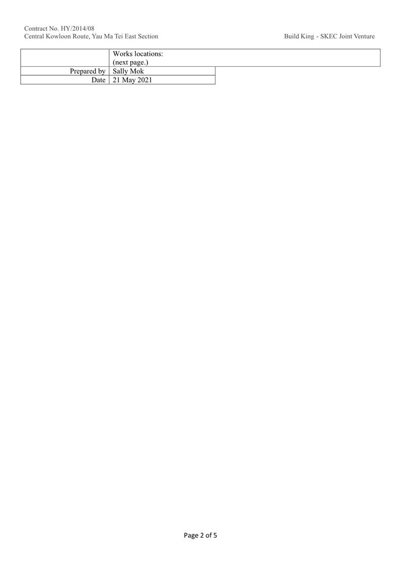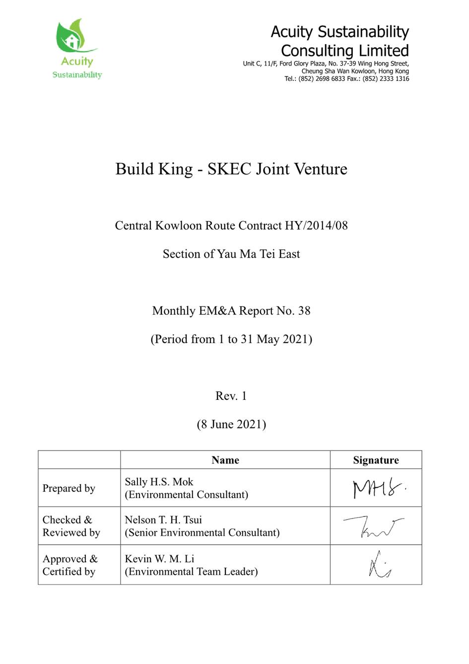 A.1 Build King – SKEC Joint Venture (“Contractor”) commenced the construction works of Highway Department (HyD) Central Kowloon Route Contract No. HY/2014/08 – Section of Yau Ma Tei East (“The Project”) on 20 April 2018. This is the 38th monthly Environmental Monitoring and Audit (EM&A) report presenting the EM&A works carried out during the period from 1 May 2021 to 31 May 2021.