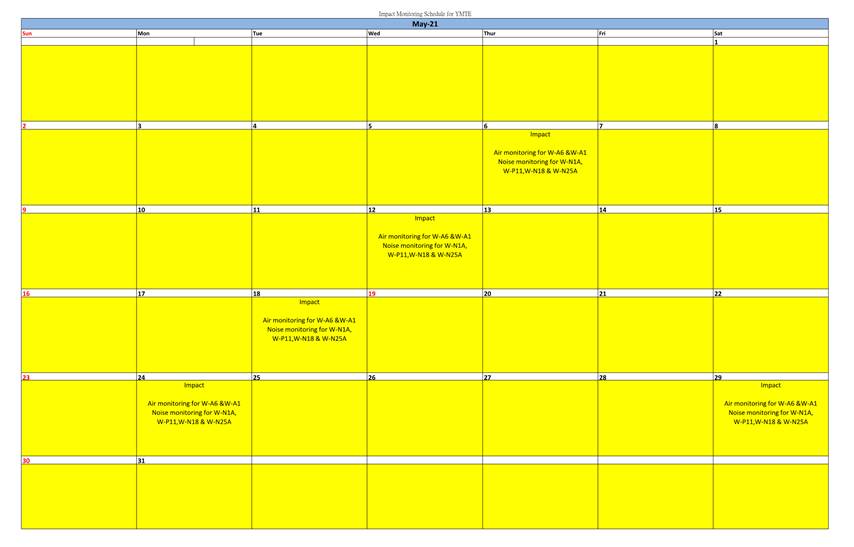 A.5 Joint weekly site inspections were conducted by representatives of Environmental Team (ET), Contractor and Engineer on 6, 13, 20, 27 May 2021. One joint site inspection with IEC was also undertaken on 13 May 2021. Details of the audit findings and implementation status are presented in Section 5.