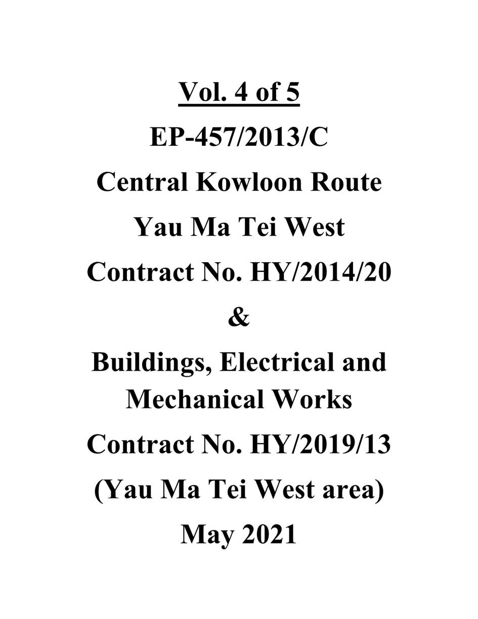 1.2. The Central Kowloon Route – Design and Construction Environmental Impact Assessment Report (Register No.: AEIAR-171/2013) was approved with conditions by the Environmental Protection Department (EPD) on 11 July 2013. An Environmental Permit (EP 457/2013) was issued on 9 August 2013. Variations of EP (VEP) was subsequently applied for and the latest EP (EP-457/2013/C) was issued by EPD on 16 January 2017.