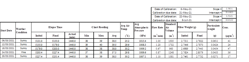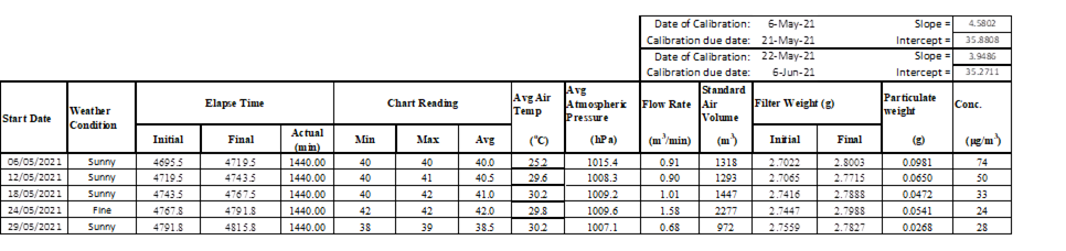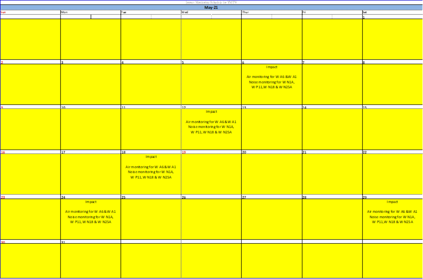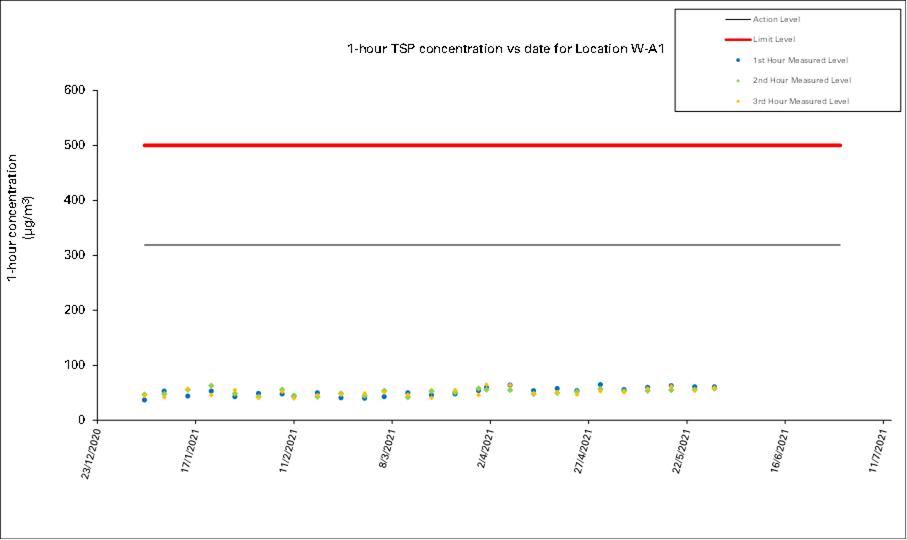 2.2 No Action/Limit Level exceedance was recorded for all 1-hour TSP and 24-hour TSP monitoring in the reporting month.