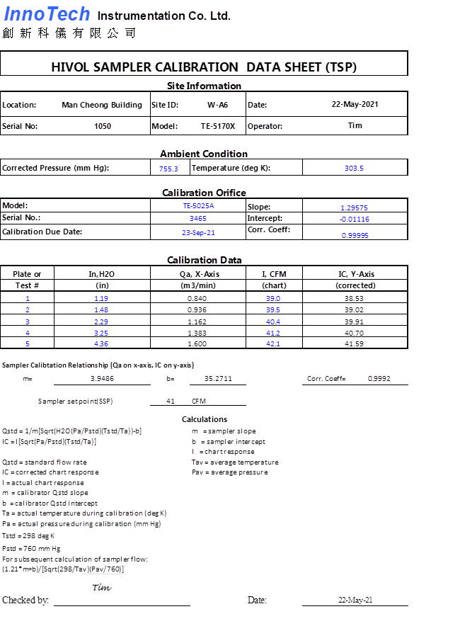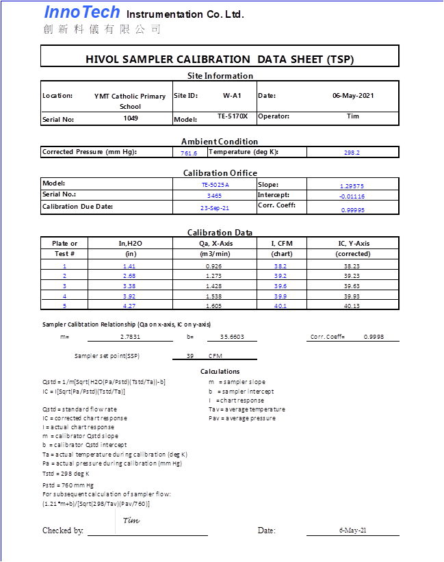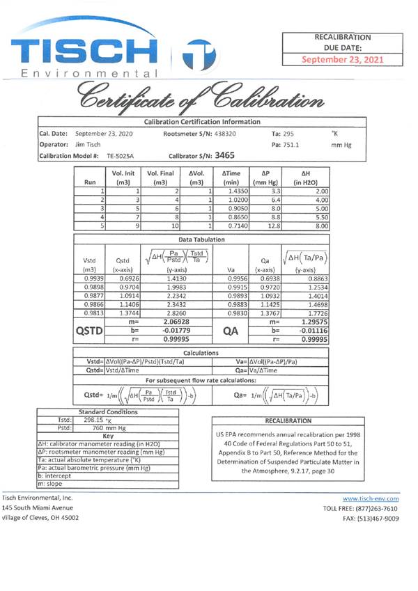 H. Calibration Certificate (Air Monitoring)