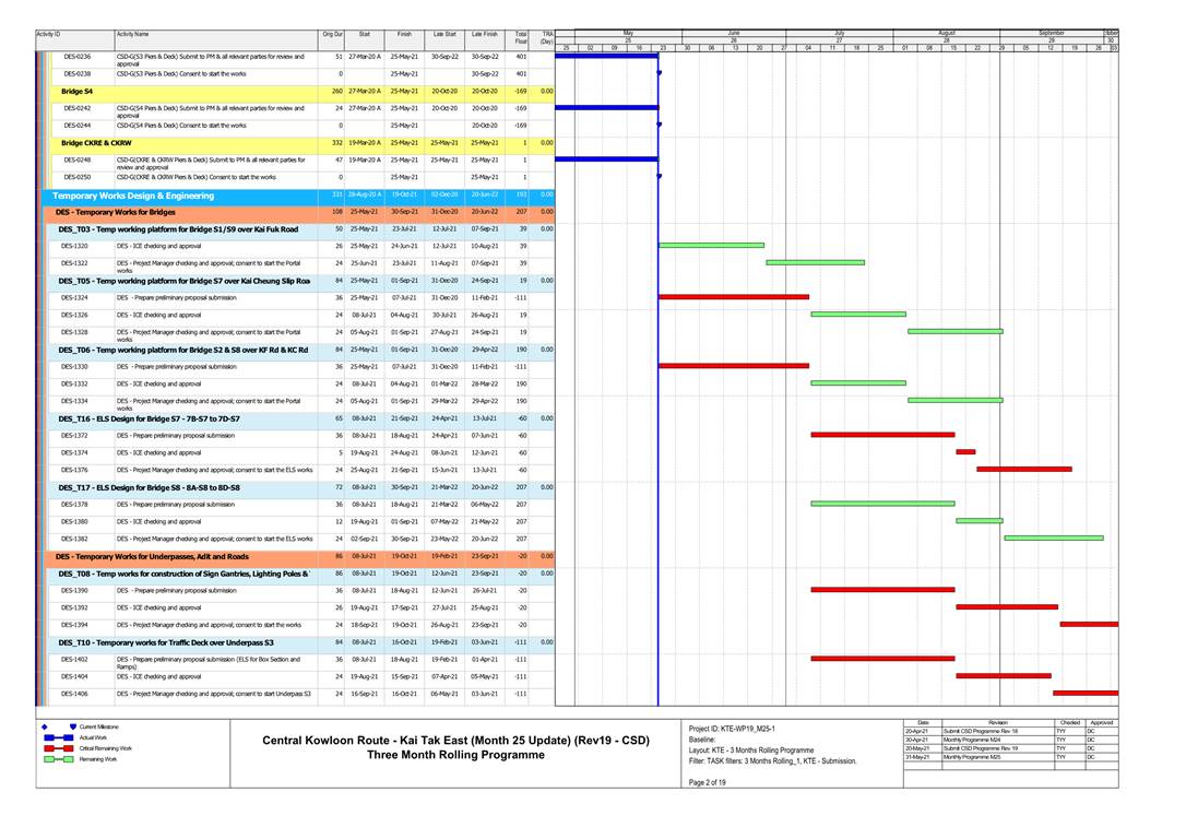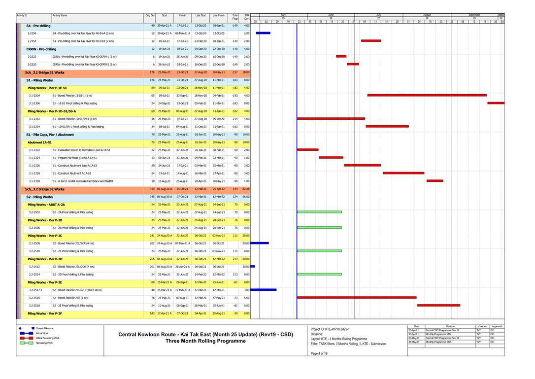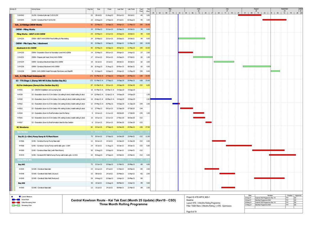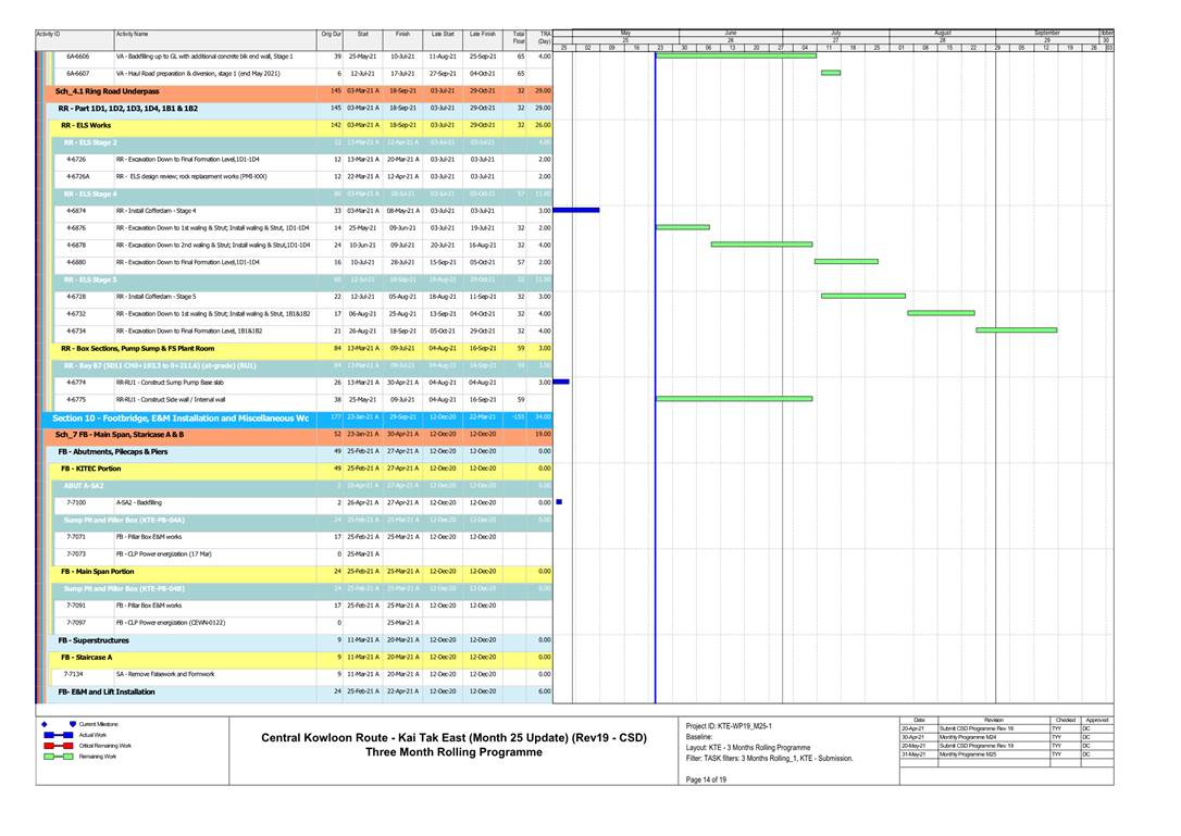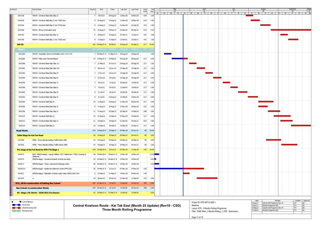 1.4. A summary of major construction activities provided by the Contractor in this reporting period is shown in Table 1.1. The construction programme is presented in Appendix B.