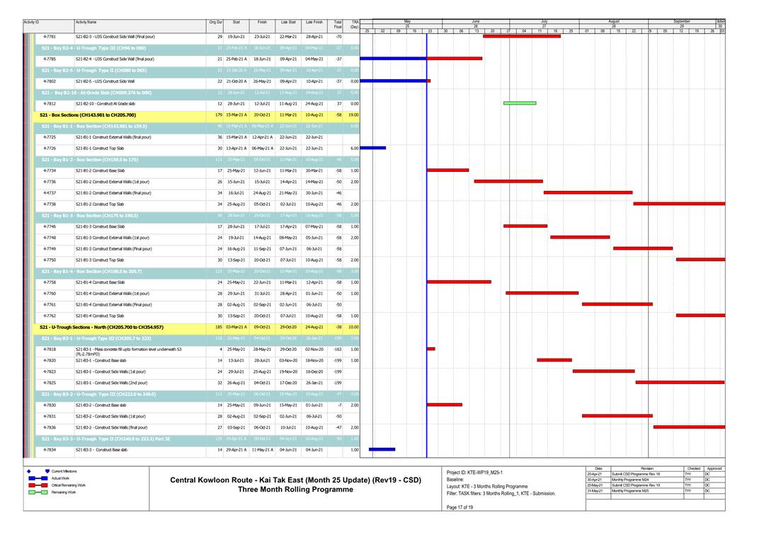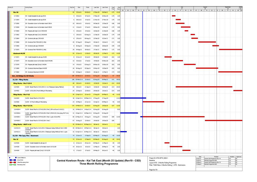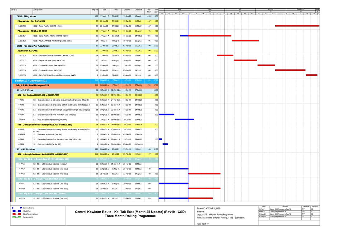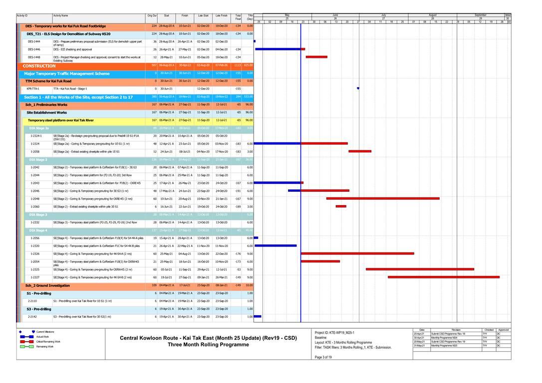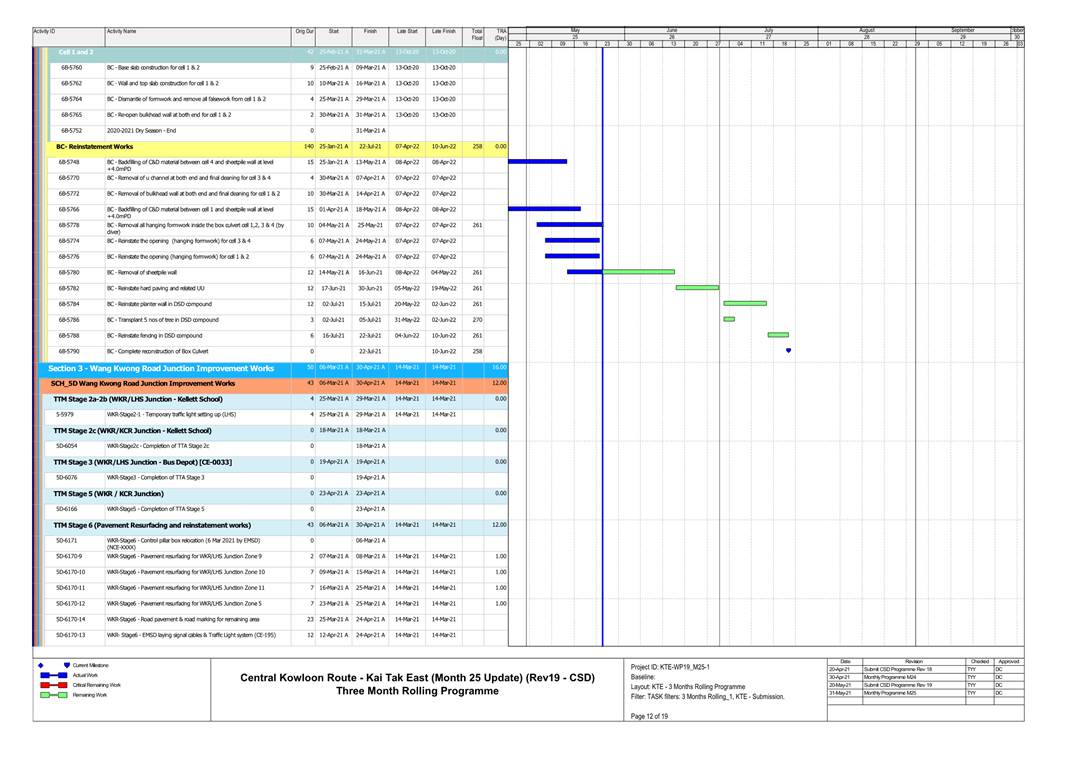 · Bored Pile at Portion 2B, 3B, Kai Cheung U Turn & Kai Cheung Loop Road. · Pile Cap Construction at Kai Cheung Loop Road & Portion 2B. · Excavation Works for Adit at Area Part 1B. · Excavation Works for Underpass at Portion 3B. · Construction of Marine Platform at Kai Tak Nallah · Retaining Wall Construction at Portion 2B · Sheet Piling Work at Area Part 1A. · Central Divider Removal at Kai Fuk Road. |