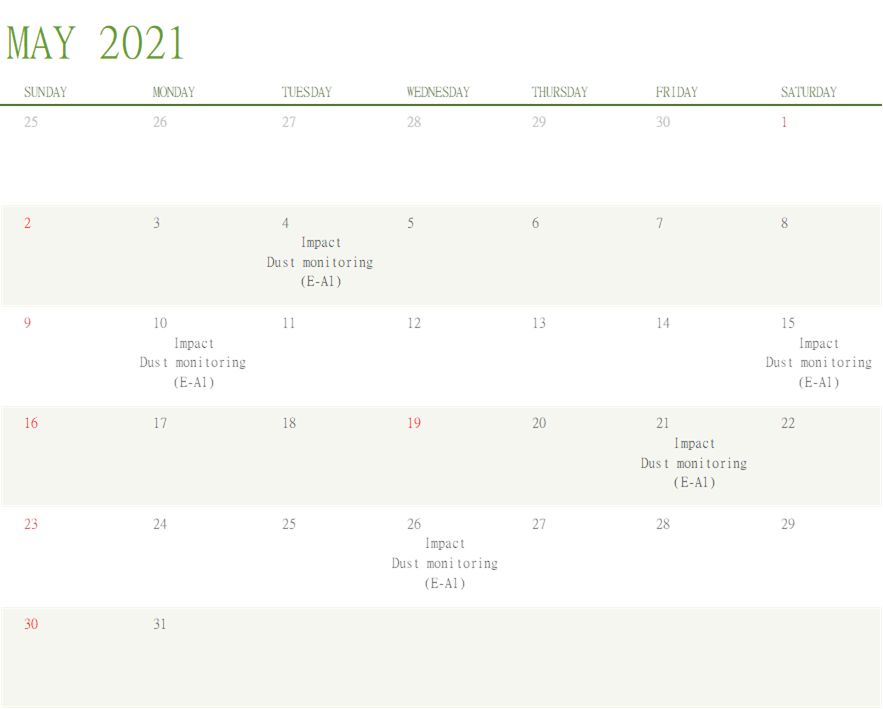 6.2 Site audits were conducted on 4, 11, 18 & 25 May 2021 in the reporting month. Joint site inspection with the representative of IEC was conducted on 11 May 2021. No non-compliance was observed during the site audit.