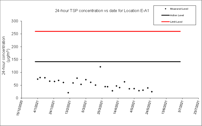 A.7 No exceedance of the Action and Limit Levels of 24-hour TSP and 1-hour TSP monitoring were recorded during the reporting month.