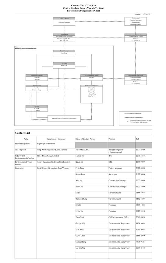 6.5 The Event and Action Plans for air quality and construction noise could be referred to Appendices D and E of the EM&A report in Contract No. HY/2014/20 respectively.