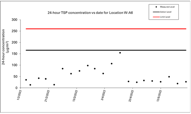 8.2 No Action/Limit Level exceedance was recorded for all 1-hour and 24-hour TSP monitoring in the reporting month.