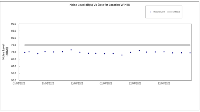 8.3 No Action/Limit Level exceedance was recorded for all noise monitoring in the reporting month.