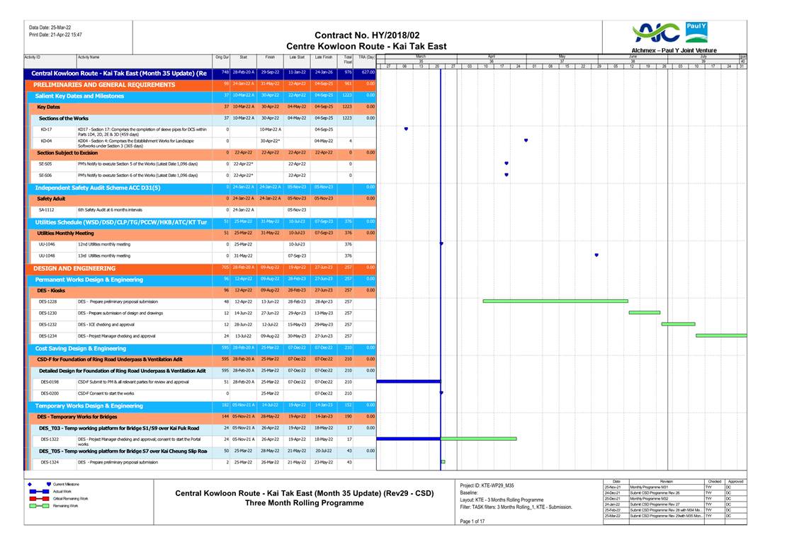 A.1 Alchmex – Paul Y Joint Venture (“Contractor”) commenced the construction works of Highway Department (HyD) Central Kowloon Route Contract No. HY/2018/02 – Section of Kai Tak East (“The Project”) on 9 September 2019. This report is the 33rd monthly Environmental Monitoring and Audit (EM&A) report presenting the EM&A works carried out during the period from 1 May 2022 to 31 May 2022.