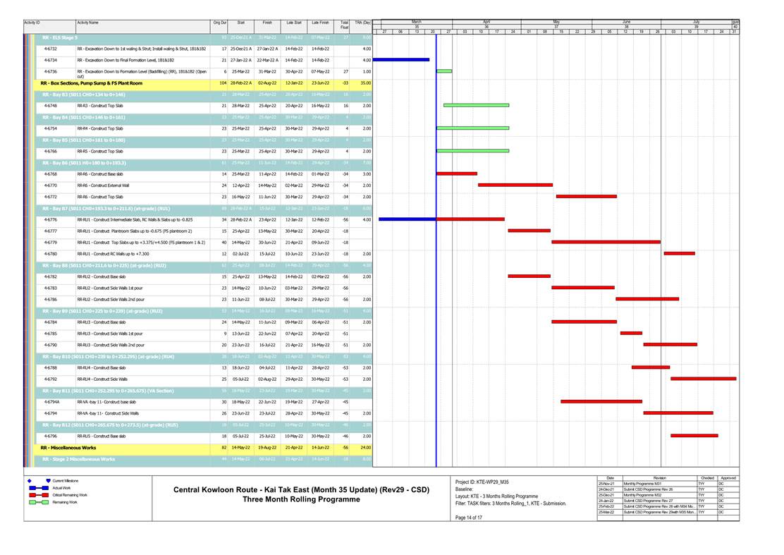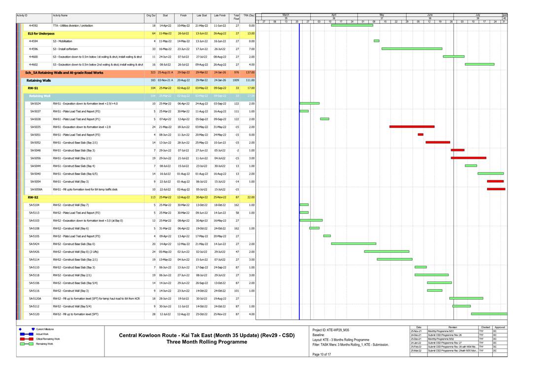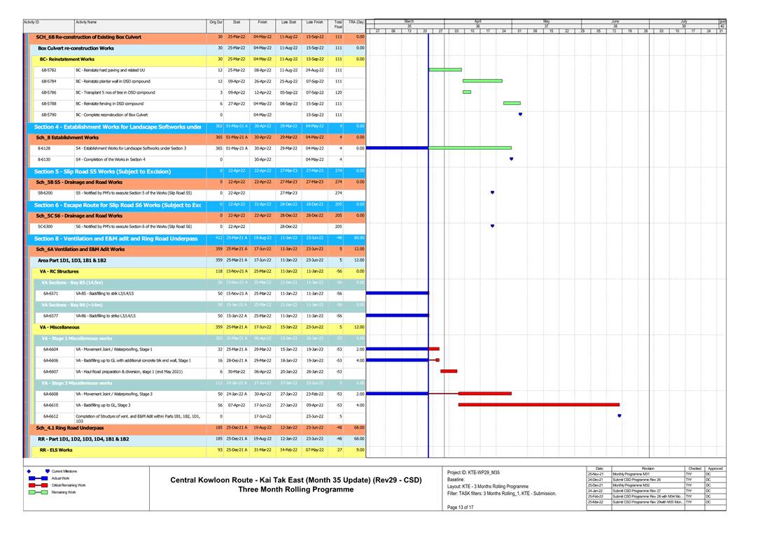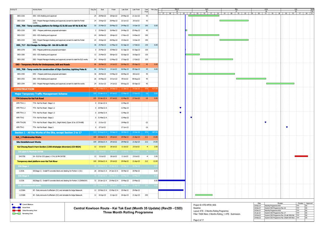 1.4. A summary of major construction activities provided by the Contractor in this reporting period is shown in Table 1.1. The construction programme is presented in Appendix B.