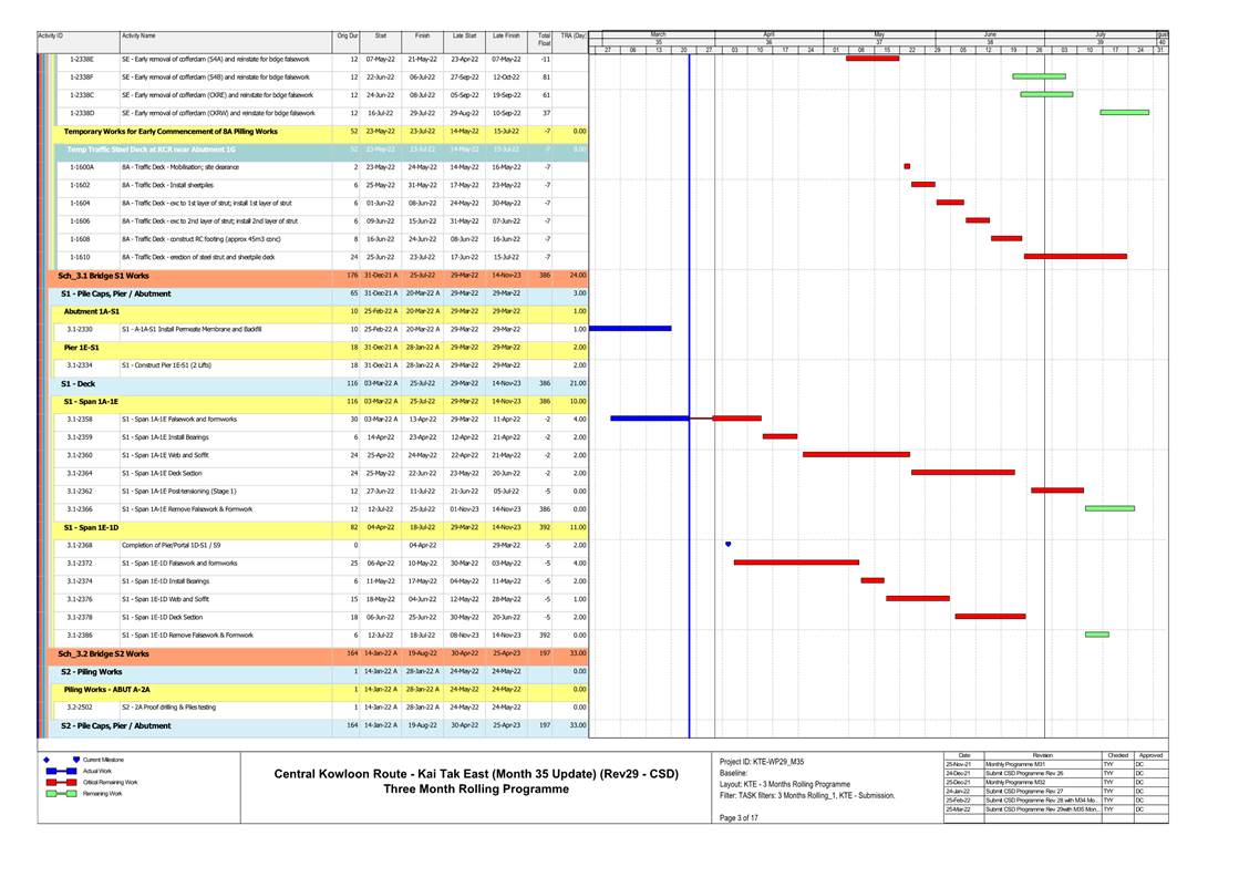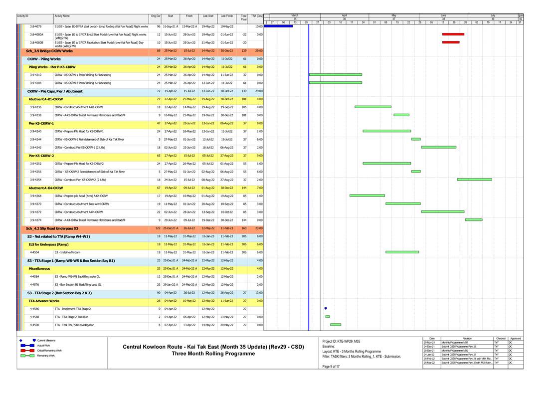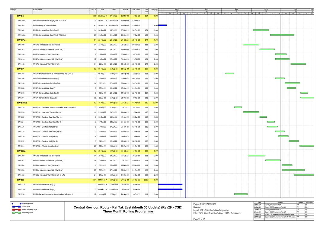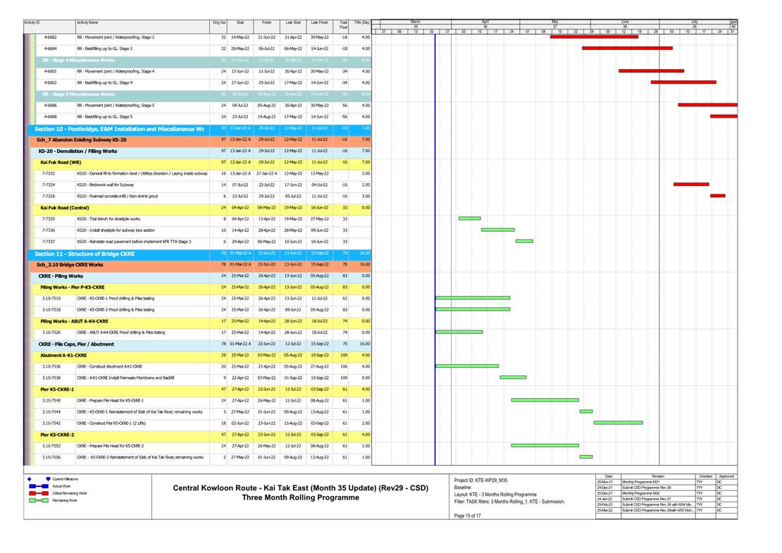 1.4. A summary of major construction activities provided by the Contractor in this reporting period is shown in Table 1.1. The construction programme is presented in Appendix B.