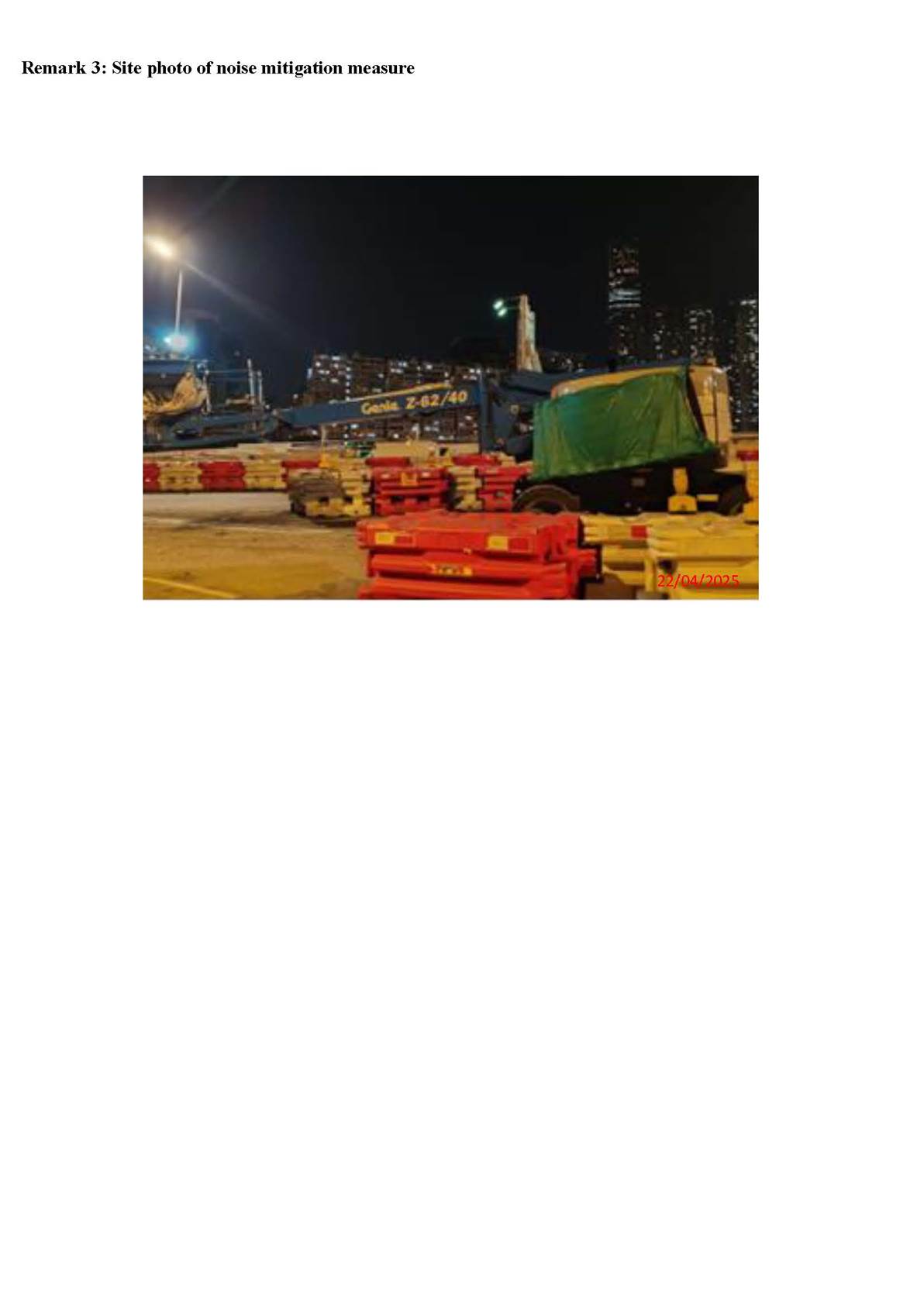 l Backfilling and reinstatement works at Zones A, B, C, D, F & G with site clearance l Bridge Works:- i. P1R – End span completed. ii. P2R – Continue for construction of deck segments (P2R-5 to P2R-8) iii. P3R – Continue for deck segment construction (P3R-8 to P3R-10) iv. P4R to P7R – Continue for install pre-fabricated parapet wall panels and cast in-situ section of parapet wall l Continue erection of main beams, secondary tie beams and acoustic panels, smoke ventilation panels, welding splice joints of main beams and commence installation MIC module PMMA panels for Noise Enclosure F02 in Zone 3 (night works). Continue piling works along Ching Ping Street for C07 Noise Enclosure l Works at Zone 2 Noise Enclosure are as the followings: i. Column E - Continue for girder beam erection ii. Column G - Continue for girder beam erection iii. Column H - Continue for girder beam erection iv. Columns C - Continue for column erection v. Columns D – Complete preparation works for column erection and commence column erection l Noise Enclosure steelworks fabrication at the fabrication yards in Zhuhai, China l Monitoring of instrumentation for all areas |